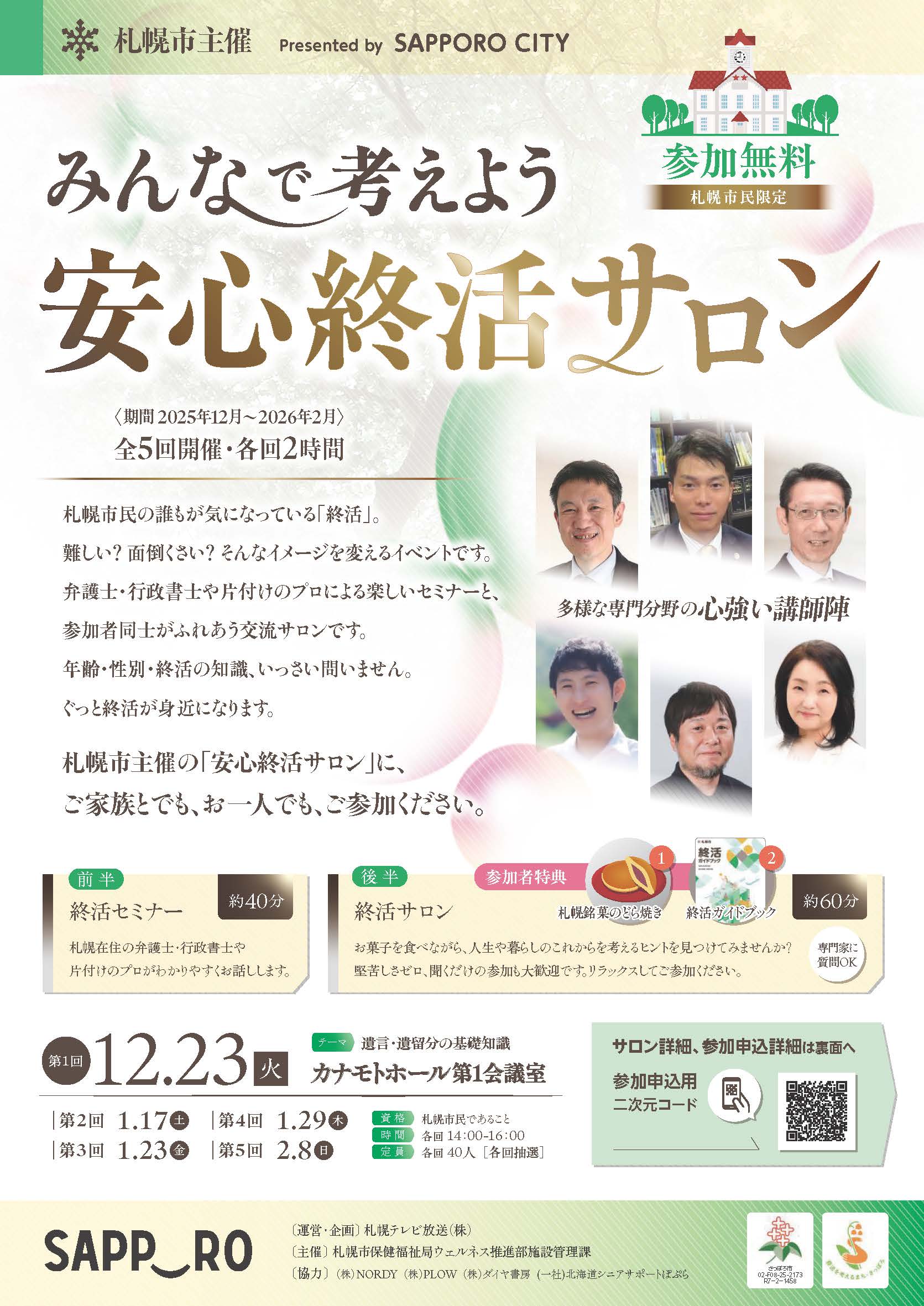 札幌市主催「みんなで考えよう 安心終活サロン」に参画&申込み開始!
