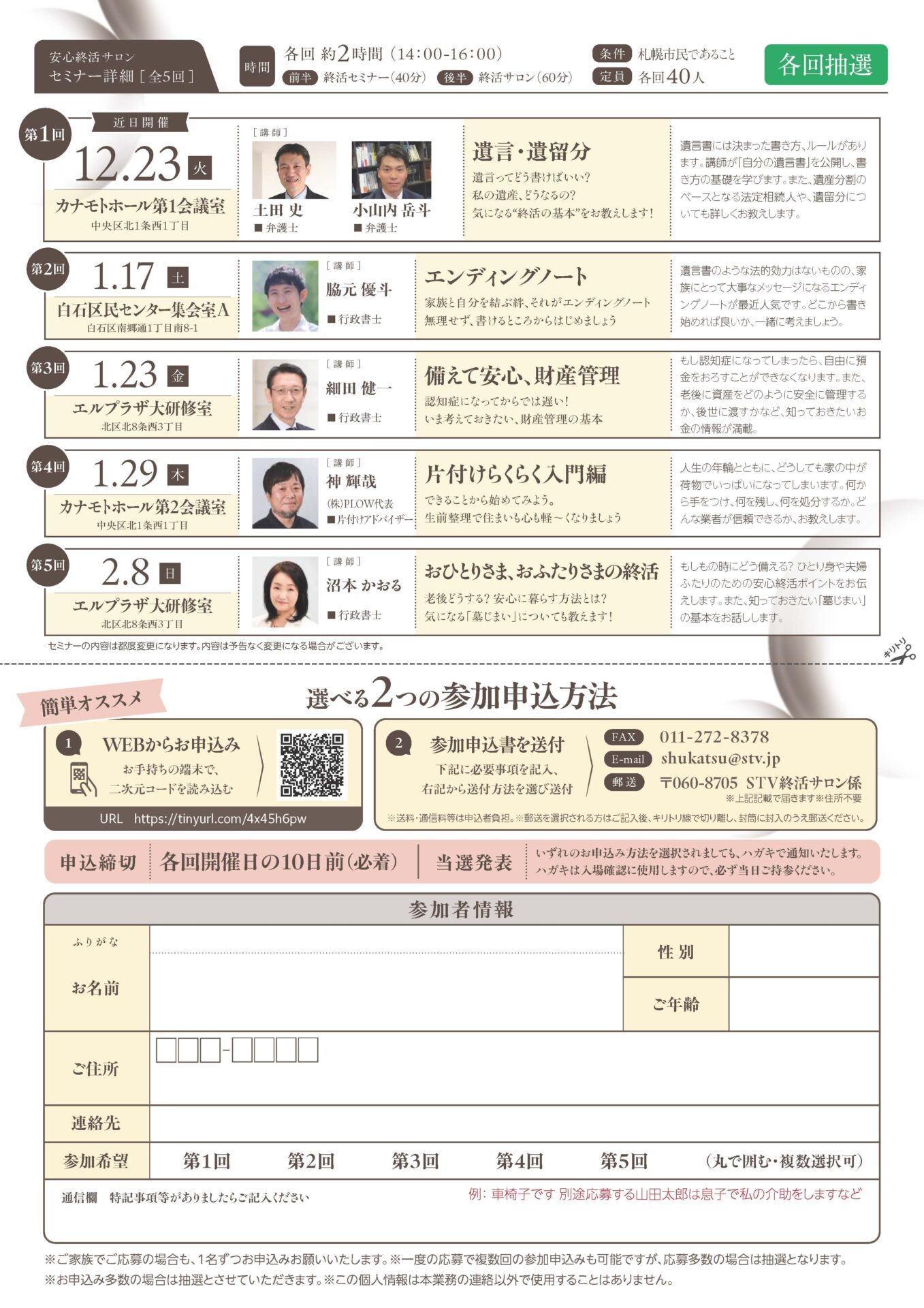 ご家族とでも,お一人でも,札幌市主催の「安心終活サロン」に是非ご参加下さい!